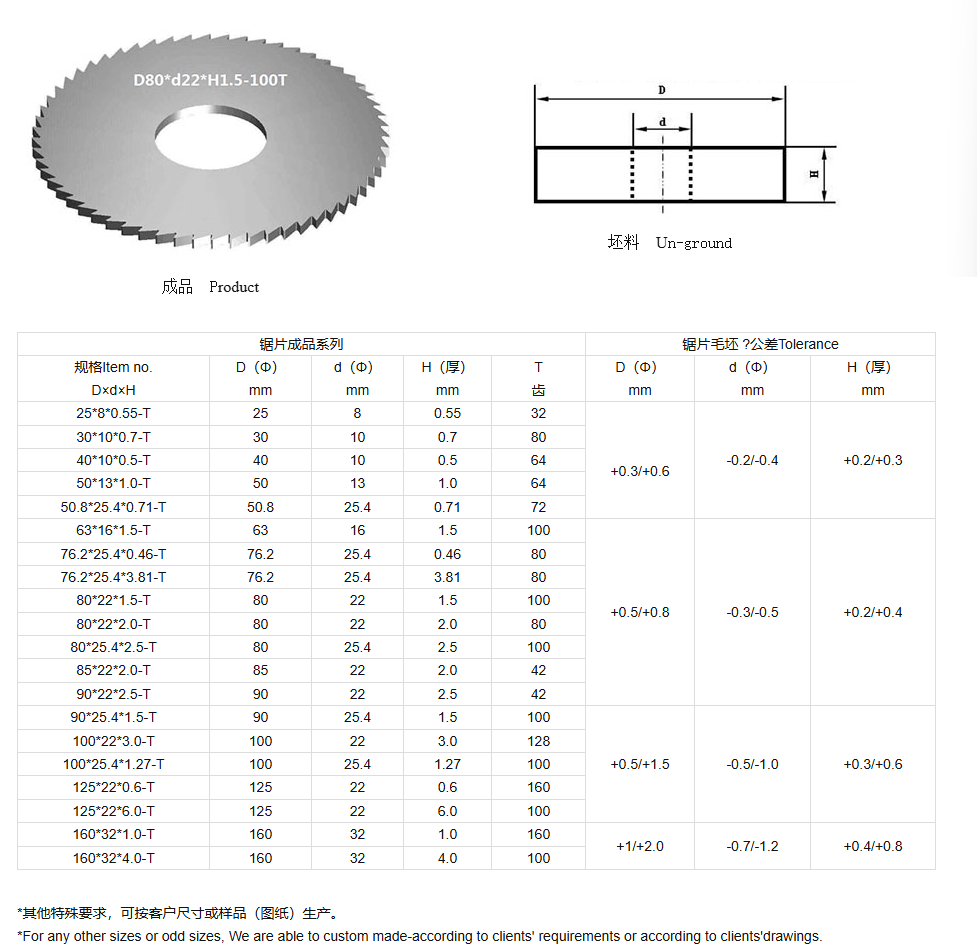 硬質(zhì)合金鋸片、坯料